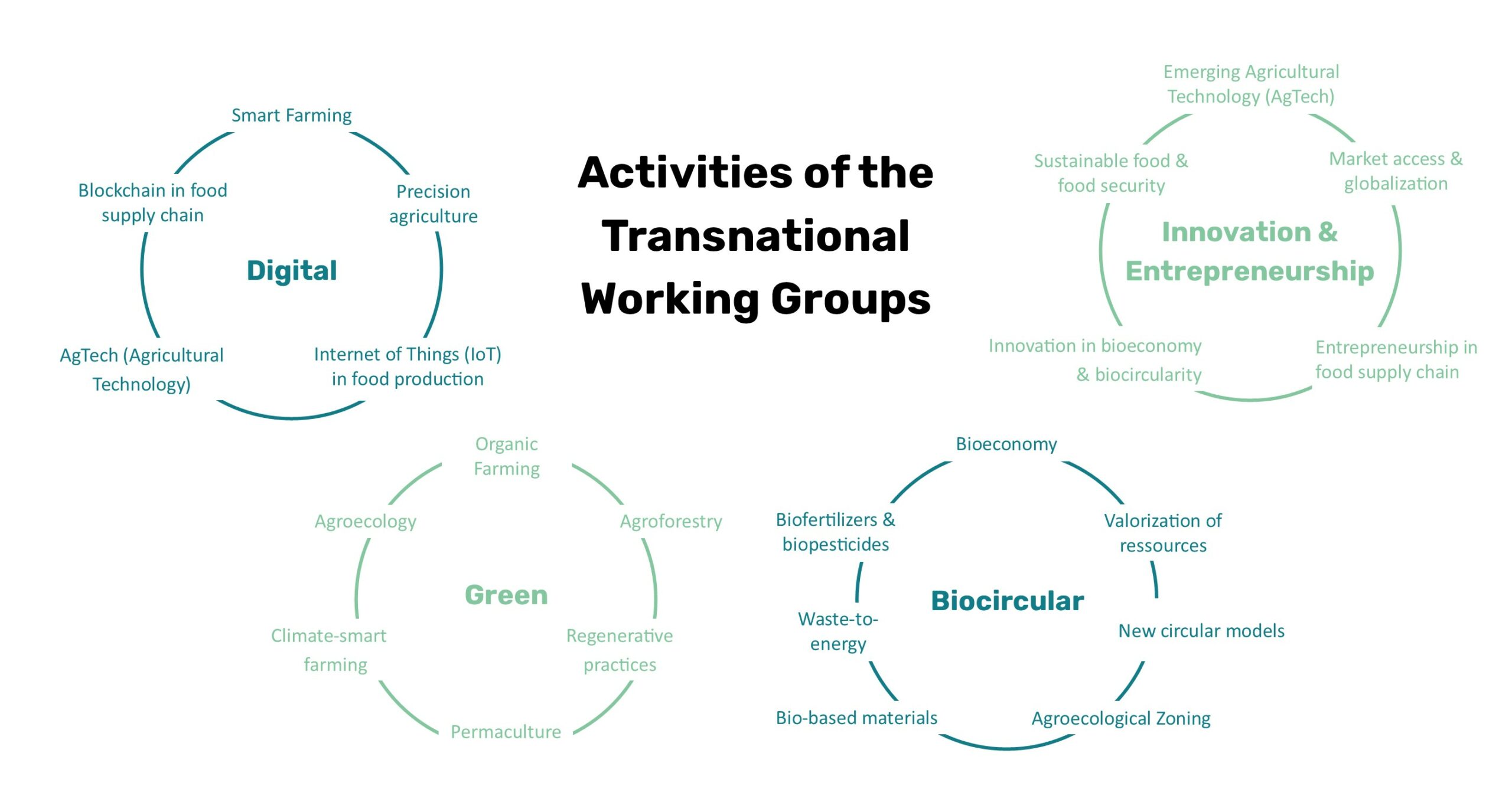 The objective of the Transnational Working Groups (TWG) is the creation of a community of experts and strategic actor, to explore and develop novel ideas and sustainable solutions for existing challenges in agriculture and food, promoting knowledge exchange, collaboration among professionals, and networking within each specialized community.